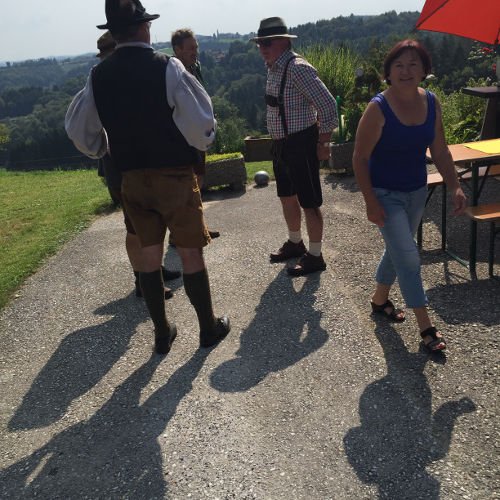 Auf der Heimfahrt gab es noch einen Zwischenstopp auf unserem "Hohenberg" wo Thomas L. seinen wunderschön restaurierten, mehrere hundert Jahre alten Bauernhof mit einem gediegenem Fest und musikalischer Umrahmung durch "Knöpferlstreich", der aktuell beliebtesten Volksmusikgruppe der Steiermark, einweihte.